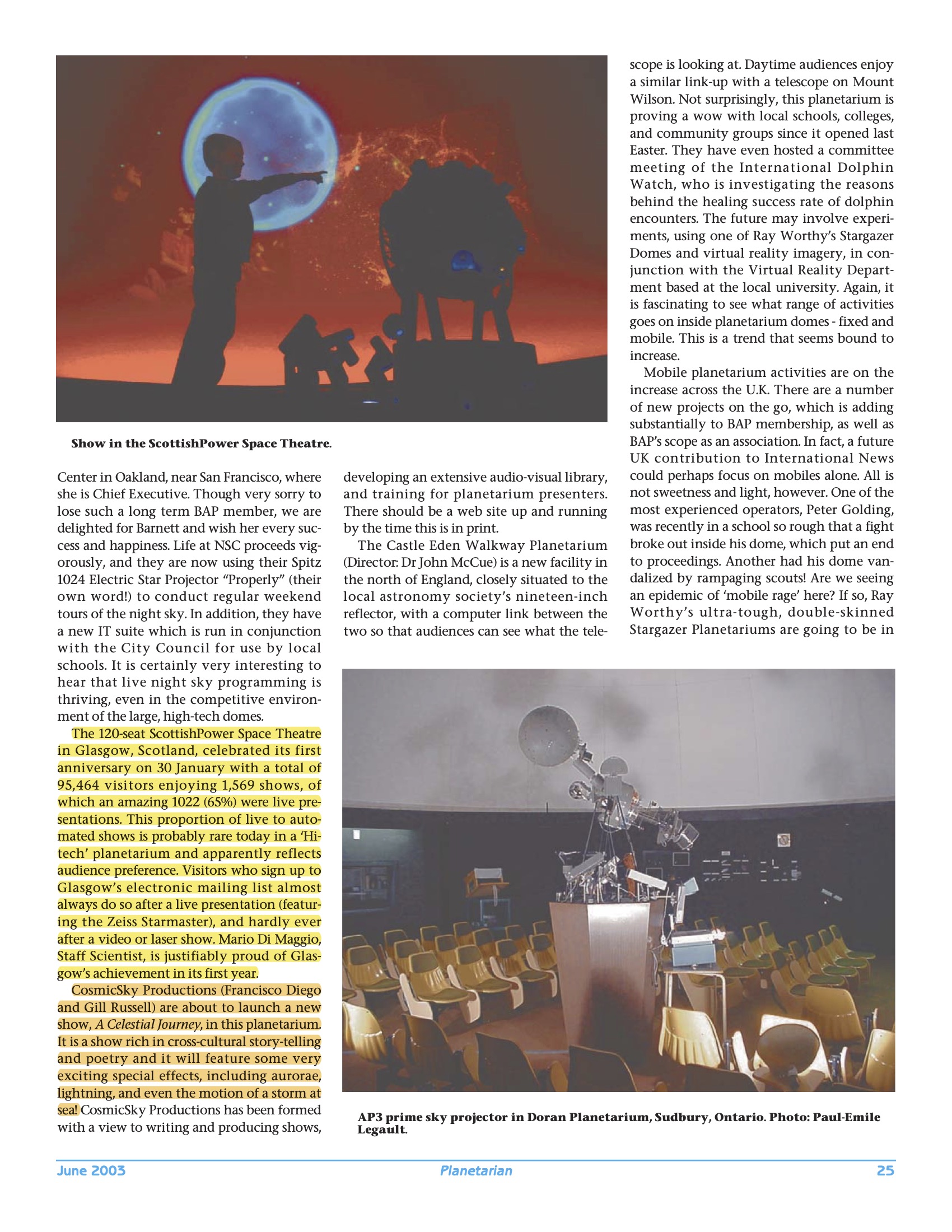 Mario launched and for three years managed the Glasgow Planetarium, then the UK`s most expensive planetarium (2001-2004); after which he launched and for eight years managed the Birmingham Planetarium, the UK`s first purpose-built digital planetarium (Thinktank Science Museum, 2005-2013). Some notable accomplishments of these planetariums appeared in the June 2003 (page 25) and June 2009 (page 23) issues of The Planetarian magazine.