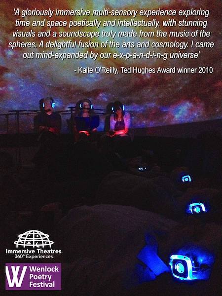 A unique shared immersive experience funded by Arts Council England, Expanding: the History of the Universe in 45 minutes appeared at a number of literary festivals in the Midlands in 2015.