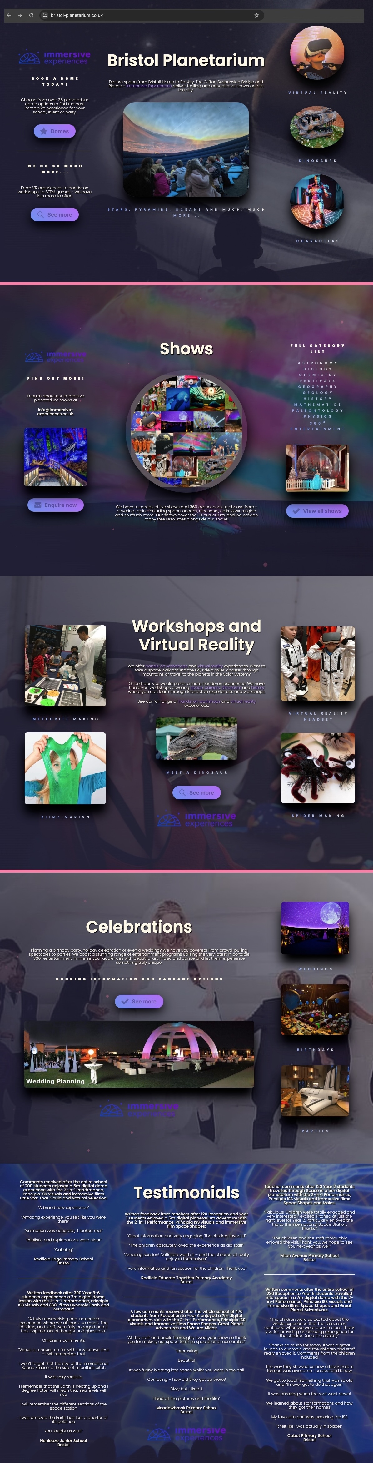 In August 2013 Mario Di Maggio was made redundant from Thinktank Planetarium (despite having made it the busiest planetarium in the UK and one of the best-known small planetariums in the world). Zee Dinally decided to leave and not contest the single remaining planetarium position. Zee obtained a job at Winchester Planetarium and asked Mario to oversee Immersive Theatres in his absence - which Mario did between August 2013 and July 2014. By then Immersive Theatres included a number of freelance presenters.