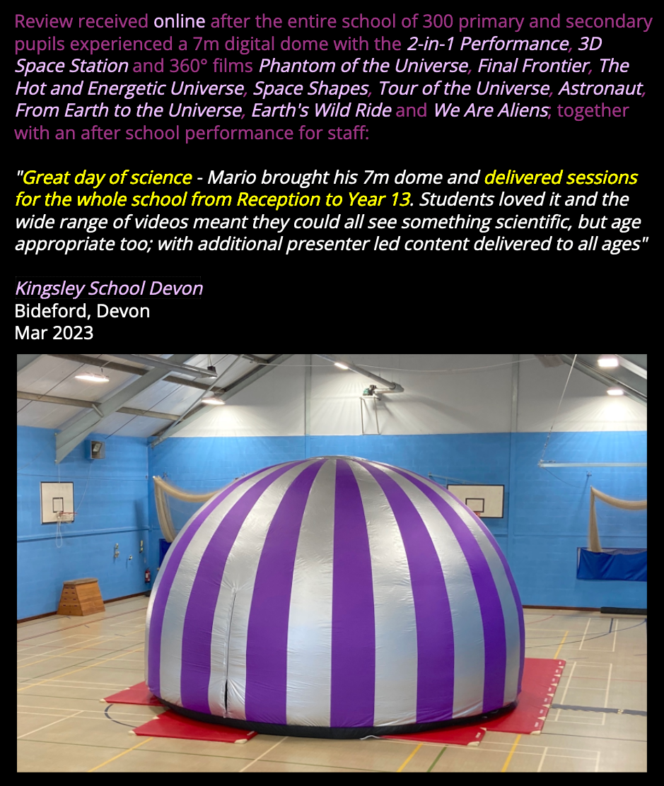 Mario delivered all six of these school visits, and the feedback was for his planetarium performances.