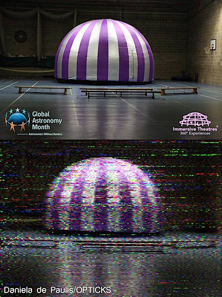 On 12 April 2019 (58th anniversary of the first person in Space) - and to commemorate the 50th anniversary of first Apollo Moon landing in July 1969 - a photo of one of our 7m domes (on the right) was transmitted to the Moon and back as part of the Opticks SciArt project by artist Daniela de Paulis and Astronomers Without Borders.
