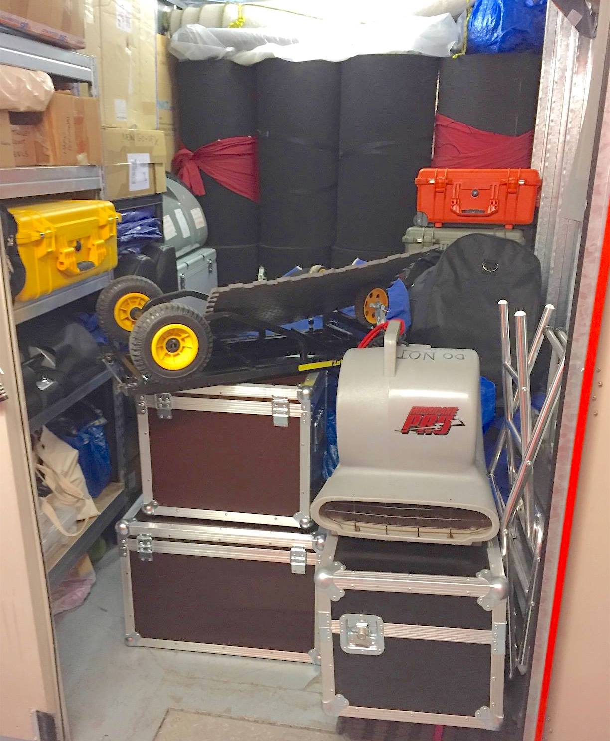 Mobile planetarium equipment in the company's first small Bristol storage unit.
