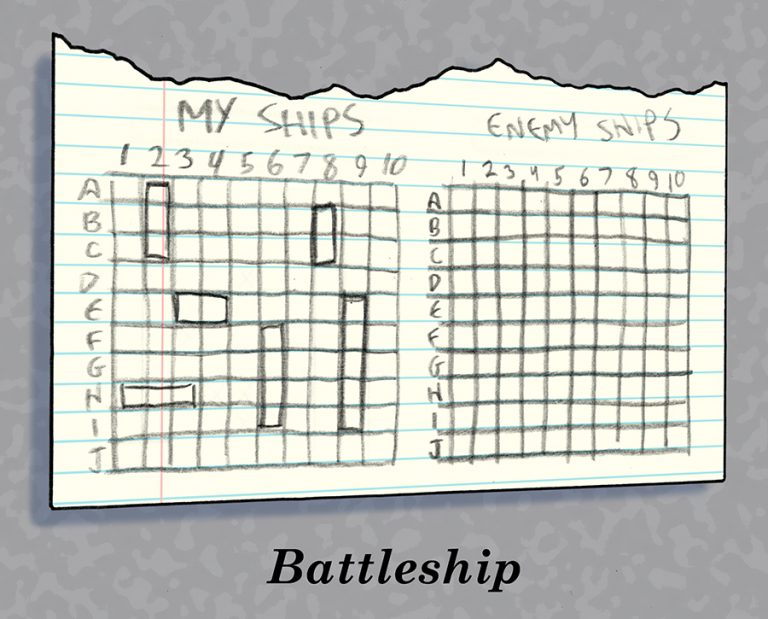 The classic board game (turned terrible movie) actually got its start as a pencil and paper game. The old-school version has the advantage of not needing those annoying little pegs or a manufactured game board, making starting a spontaneous showdown, or playing in the car on a long road trip, much easier.